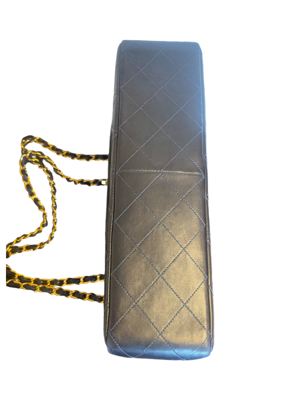 Description: Authentic maxi single flap bag lambskin leather bag date 1997/8 with 22ct gold plated hardware. This bag has had minimum wear in mint condition. Perfect vintage bag for a Chanel lover.