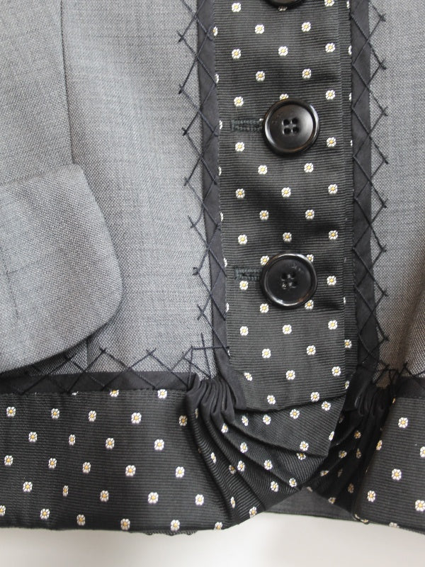Description: Haute couture jacket in grey fine wool with spotted detail around the collar, pockets and hem
